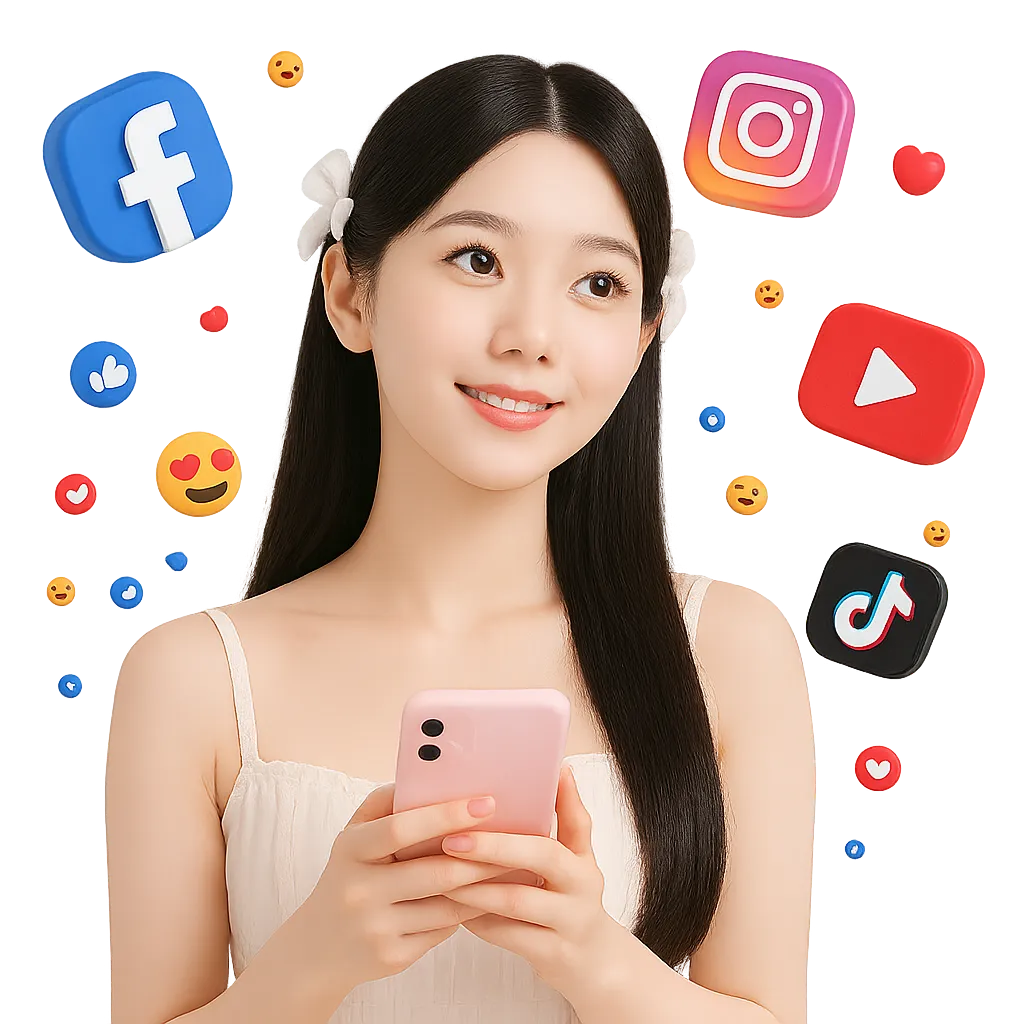 เช่น Facebook, Instagram, YouTube, Twitter, Vk,Tiktok